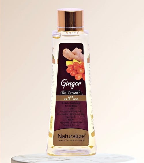 Naturalize Ginger Regrowth Oil enhances healthier hair growth by stimulating and improving circulation to the scalp. Nourished with required nutrients and fighting off dandruff, ginger oil helps maintain healthy scalp.