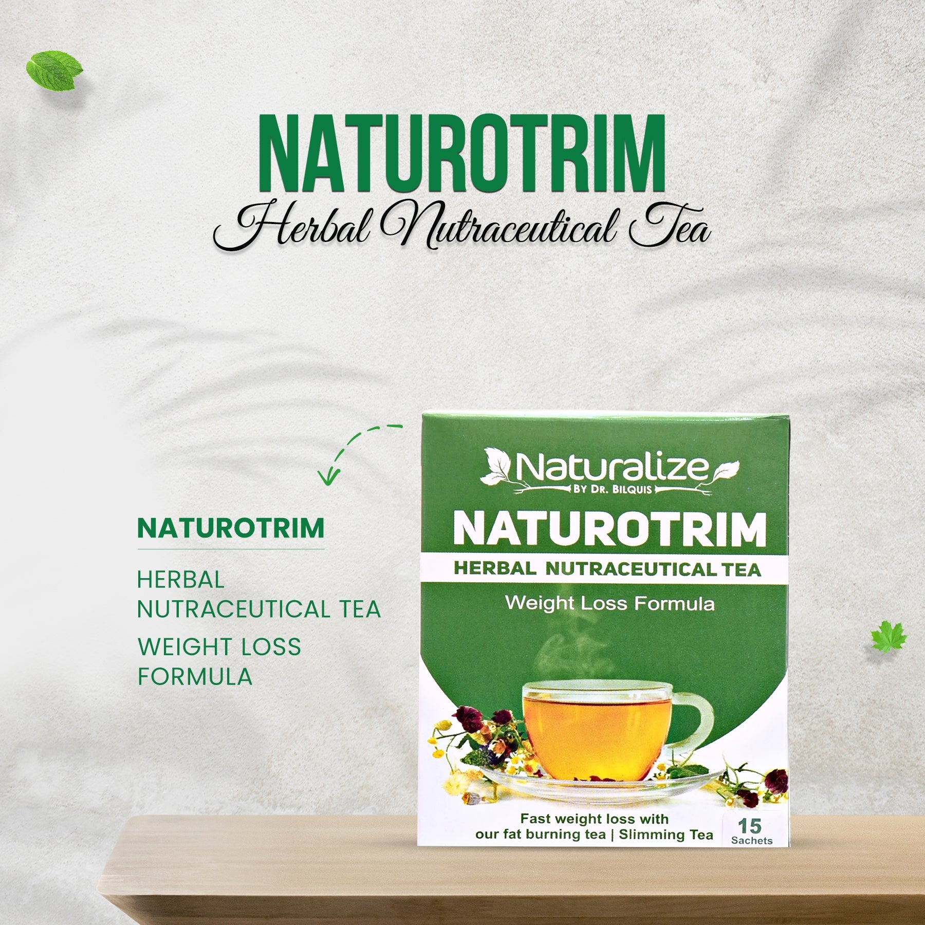 نیچروٹرم ہربل ٹی از ڈاکٹر بلقیس شیخ۔ گرین ٹی اینڈ کمبوجیا ایکسٹریکٹ،